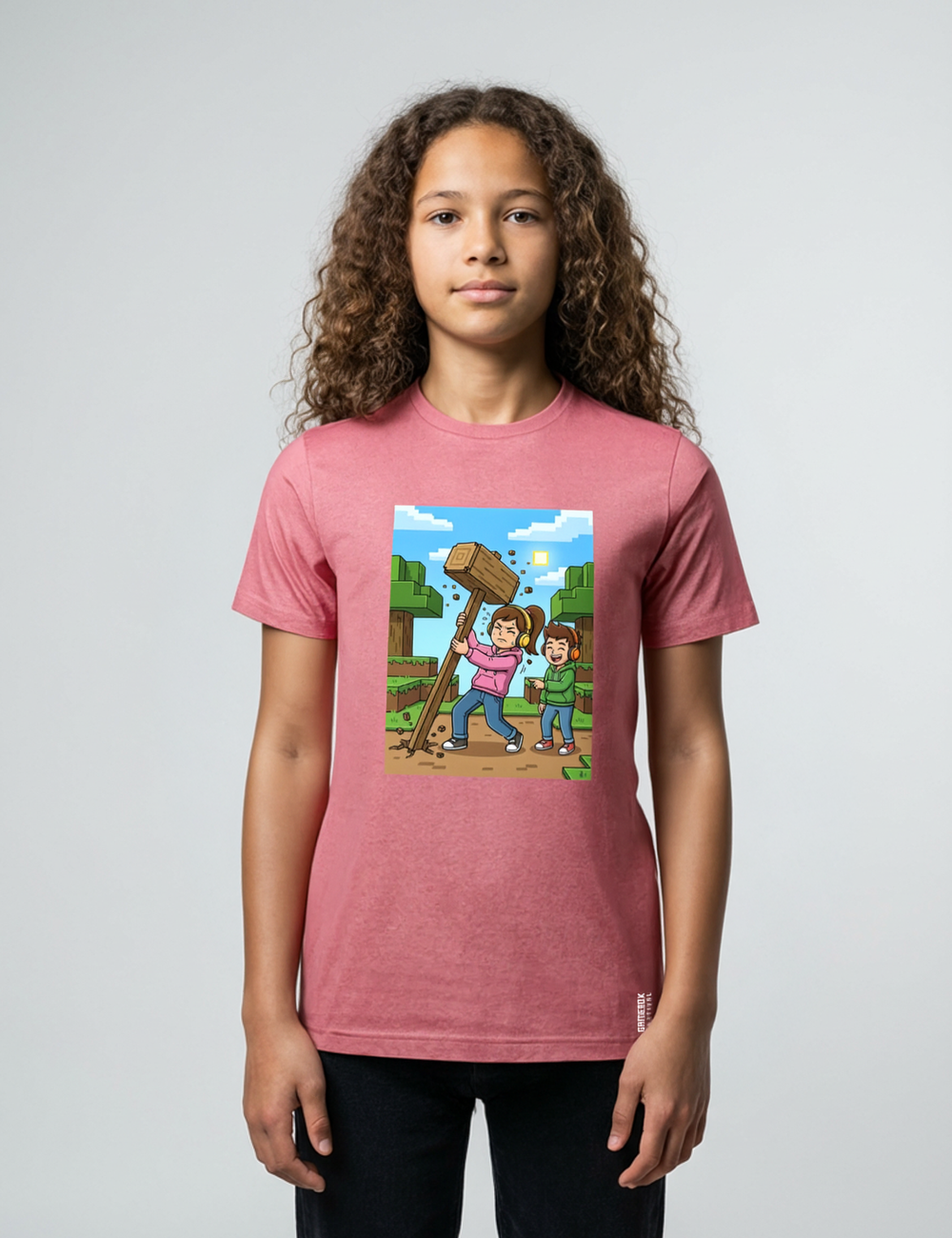 T-shirten er lavet i en blød og behagelig kvalitet, som gør den perfekt til både leg, gaming og kreative eventyr i hverdagen. Et sjovt og genkendeligt design til børn, der elsker at udforske, bygge og skabe deres egen verden.