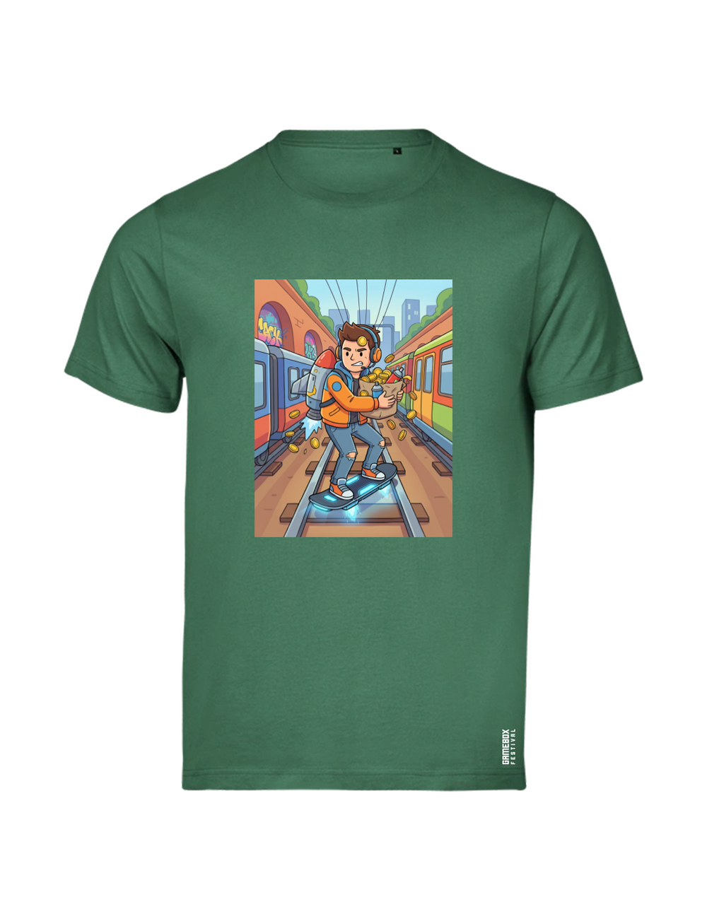 • Premium t-shirt med “Spilverden – City Runner” grafik