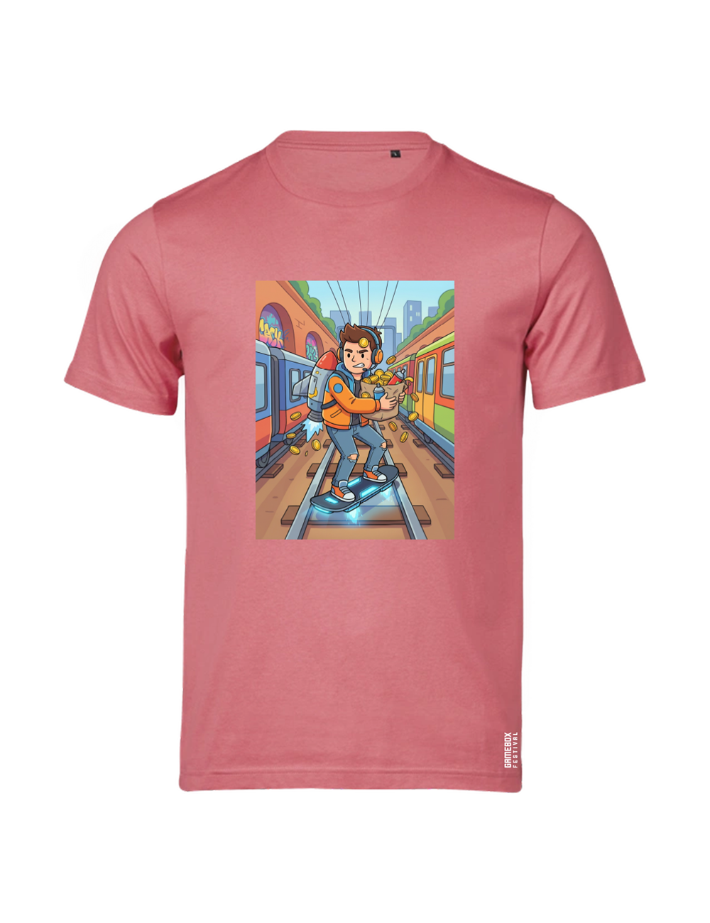 • Premium t-shirt med “Spilverden – City Runner” grafik