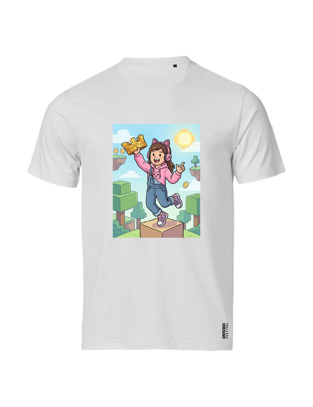 • Premium t-shirt med “Spilverden – Creator Quest” grafik