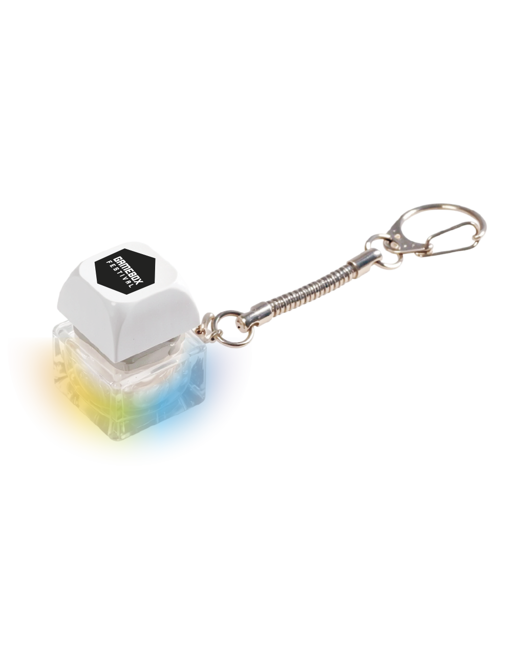 Denne Gamebox keyhanger er formet som en klassisk tast og lyser op i flere farver med et enkelt tryk. Den kombinerer gaming-æstetik med en sjov, taktil detalje, der både kan bruges som lille stress-reliever og som blikfang på dine nøgler, din taske eller din rygsæk.