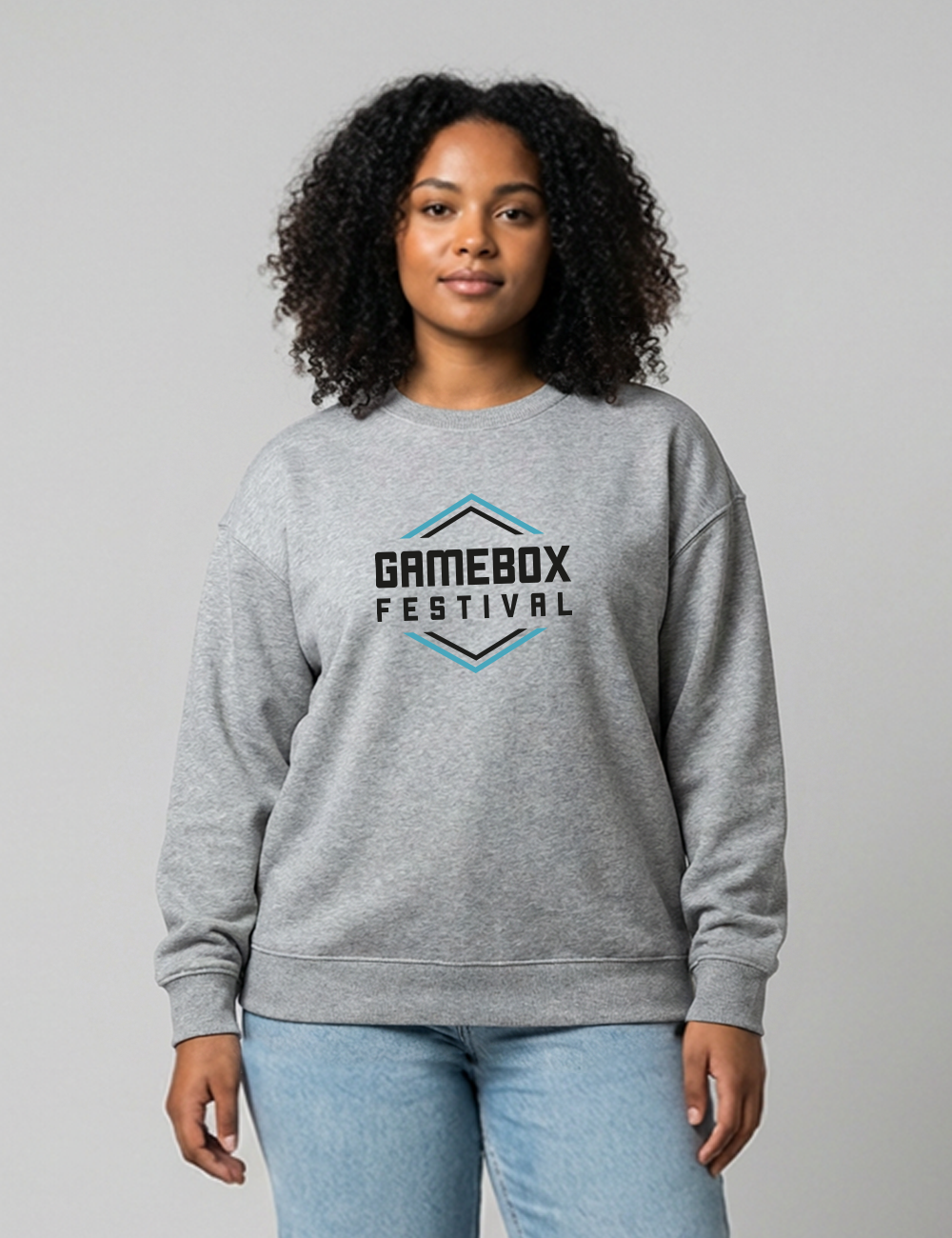 Klassisk crewneck sweatshirt med den velkendte Gamebox Festival-grafik på fronten. Et enkelt og genkendeligt design, der samler gaming, fællesskab og festivalstemning i én tidløs style, som kan bruges igen og igen.