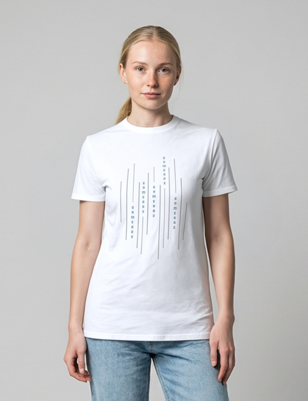 T-shirt med et moderne og grafisk Gamebox-print, inspireret af gaming, bevægelse og digital energi. Det lineære design giver et stilrent udtryk, der fungerer både til hverdag, gaming og events.