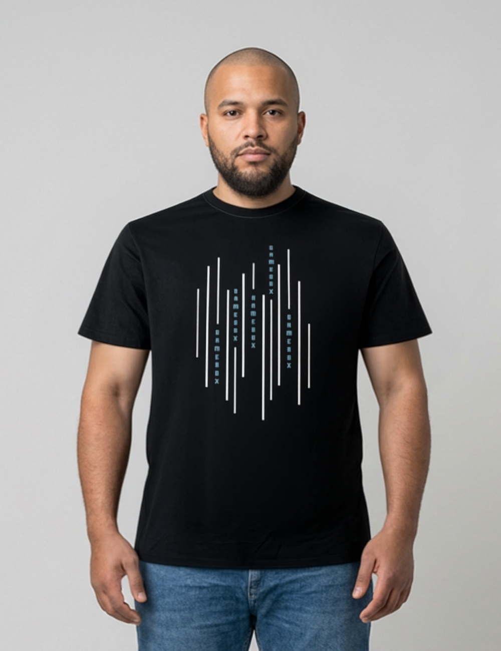 T-shirt med et moderne og grafisk Gamebox-print, inspireret af gaming, bevægelse og digital energi. Det lineære design giver et stilrent udtryk, der fungerer både til hverdag, gaming og events.