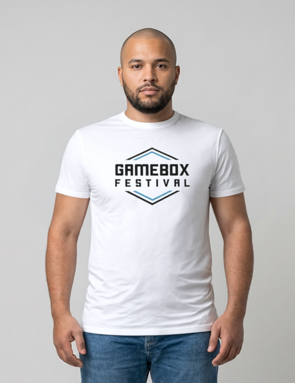 • Gamebox Festival-grafik på front og i nakken