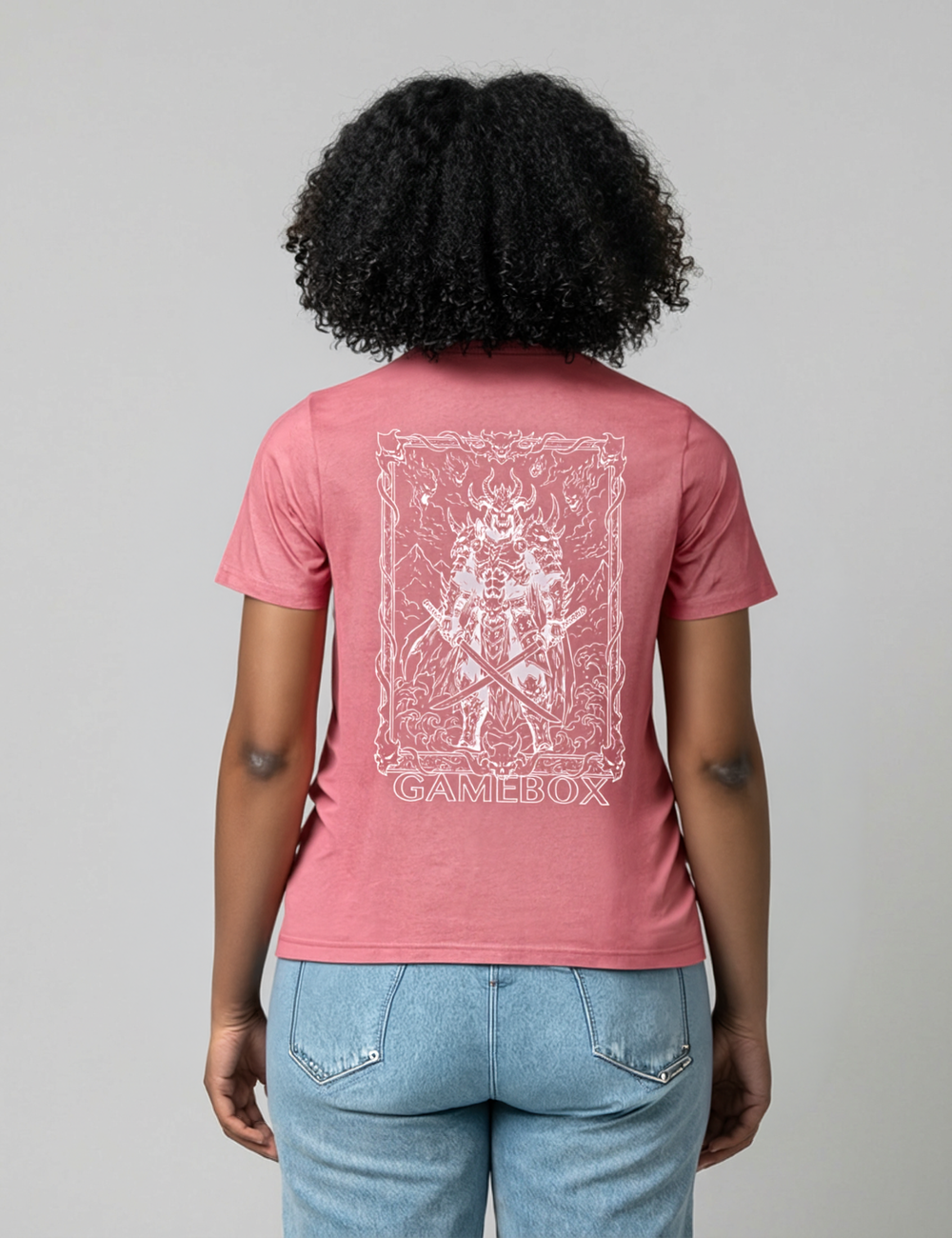 T-shirten er lavet i en kraftigere kvalitet, som føles både blød og solid – perfekt til lange dage på Gamebox, intense gaming sessions eller som en del af dit hverdagsfit. Et statement-piece til dig, der ikke er bange for at gå direkte ind i mørket.